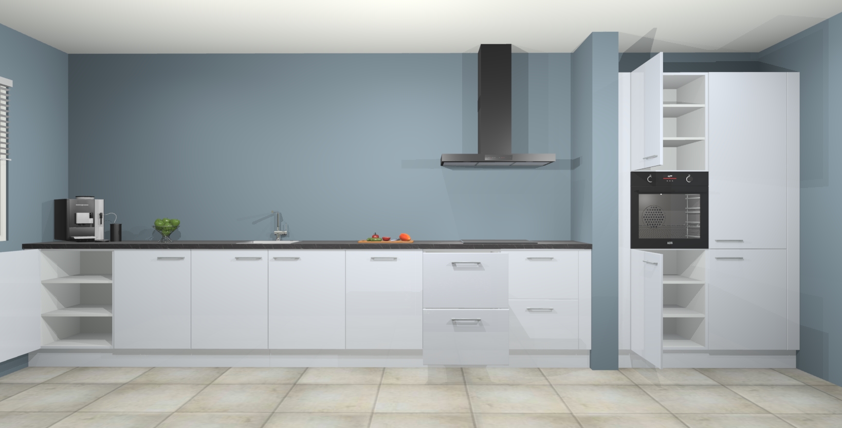 Met de Sneeuwwitte hoogglans keuken Elzas Maakt u van uw keuken het pronkstuk van uw huis. Stijlvol en toch praktisch, de nieuwste look voor wie meer waarde en charme aan zijn huis wil toevoegen. Met prachtige handgrepen die zich lenen voor een klassieke stijlbron, zal u niet teleurgesteld zijn in het resultaat. De soft-close deurscharnieren geven een gevoel van luxe omdat ze zachtjes bewegen zonder storende of krakende geluiden te veroorzaken.