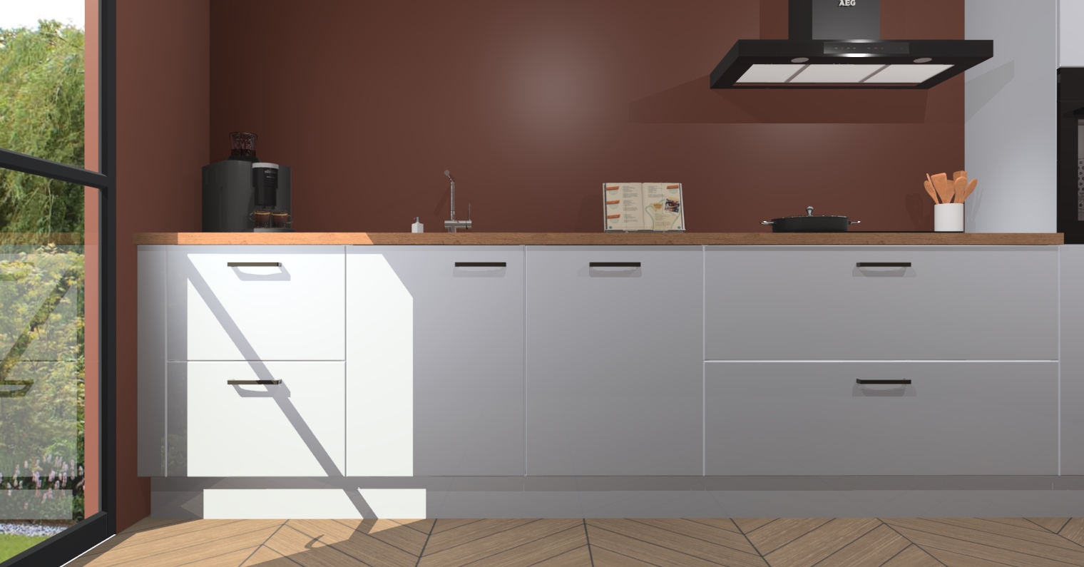 In deze box zijn alle kleuren verzameld van de deuren en werkbladen. Vraag de gratis kleurenbox aan en kijk thuis rustig verder!