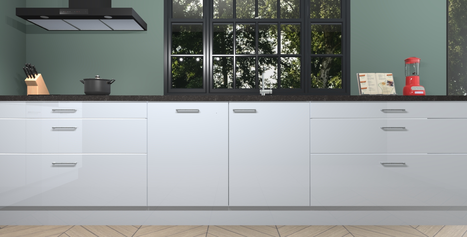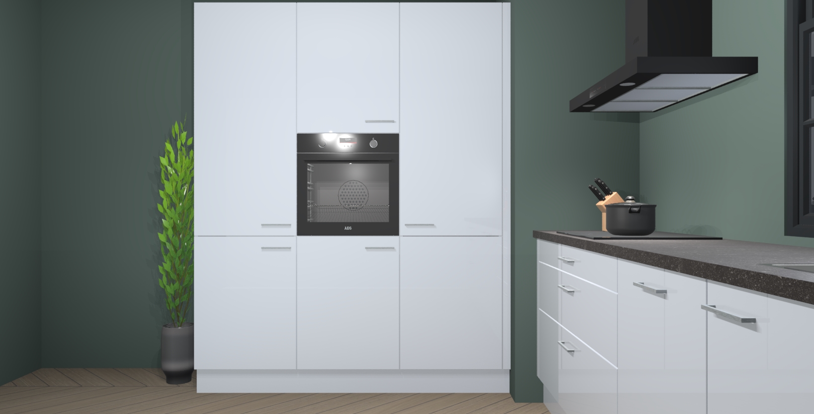 De softclose deuren openen en sluiten is ook heel eenvoudig - geniet van een moeiteloze keukenervaring, zelfs als er kinderen rondlopen. Voor extra gemak bij het plaatsen van uw bestelling bieden we ook een upgrade naar een kookplaat met geïntegreerde afzuiging.
