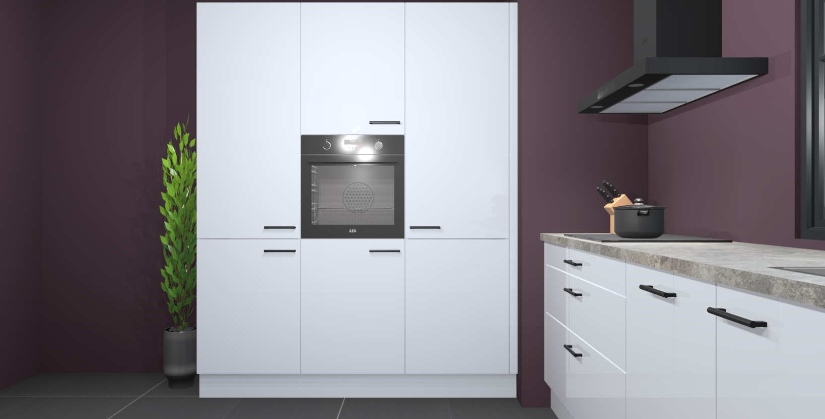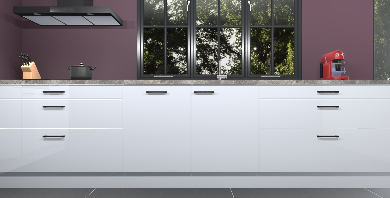 De softclose deuren openen en sluiten is ook heel eenvoudig - geniet van een moeiteloze keukenervaring, zelfs als er kinderen rondlopen. Voor extra gemak bij het plaatsen van uw bestelling bieden we ook een upgrade naar een kookplaat met geïntegreerde afzuiging.