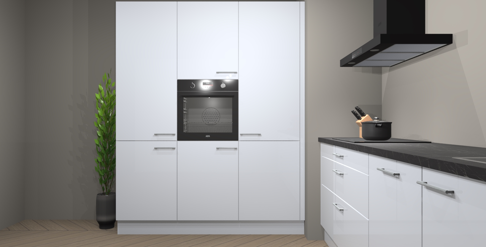 De softclose deuren openen en sluiten is ook heel eenvoudig - geniet van een moeiteloze keukenervaring, zelfs als er kinderen rondlopen. Voor extra gemak bij het plaatsen van uw bestelling bieden we ook een upgrade naar een kookplaat met geïntegreerde afzuiging.