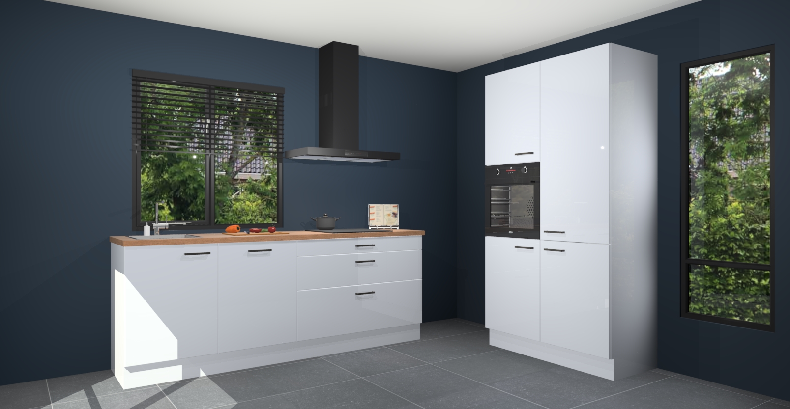 De setting is compleet gemaakt door de vijf inbouwapparaten: wanneer u gaat bestellen kunt u upgraden naar AEG-apparaten als oven, inductieplaat, afzuigkap, vaatwasser en koelkast. Kiest u voor onze Sneeuwwitte hoogglans keuken Monaco, dan weet u zeker dat u te maken heeft met Duitse kwaliteit. Bovendien is er altijd sprake van een lage prijs en profiteren we aantrekkelijk leveringstermijn: die bedraagt slechts 7 weken ! Om het extra makkelijk te maken worden de keukenkasten reeds voorgemonteerd geleverd.