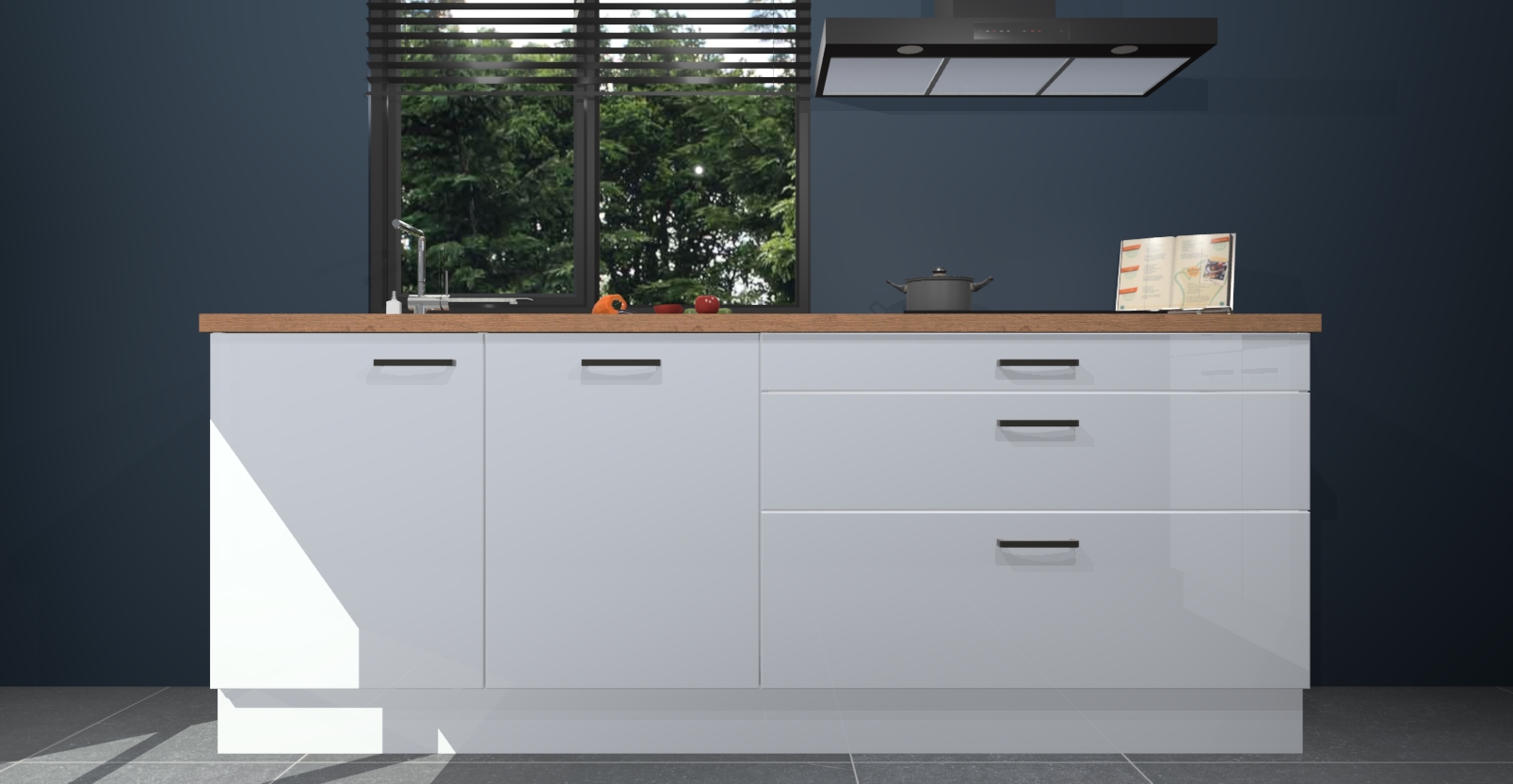 Inclusief plinten, stelpoten en werkblad