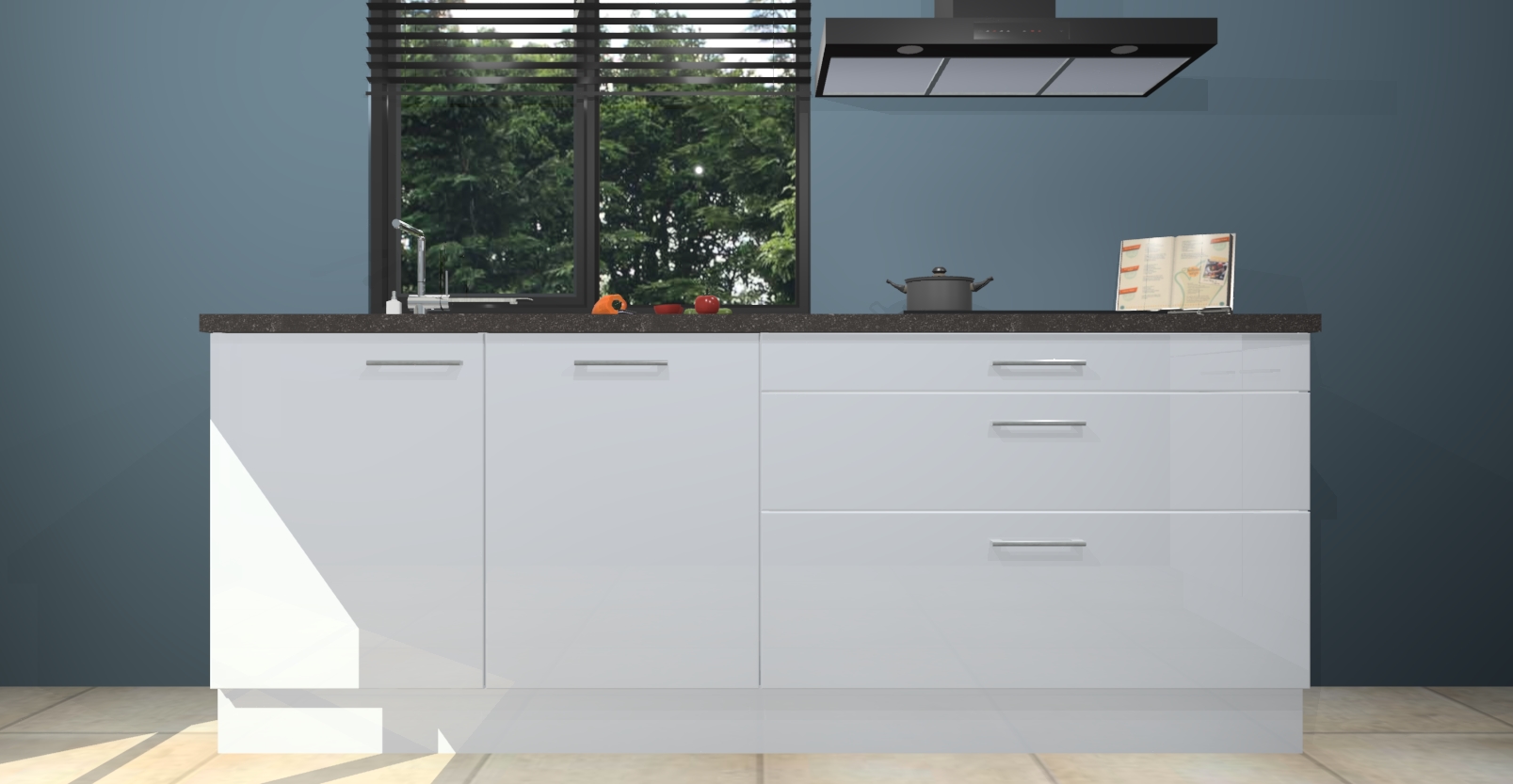 De setting is compleet gemaakt door de vijf inbouwapparaten: wanneer u gaat bestellen kunt u upgraden naar AEG-apparaten als oven, inductieplaat, afzuigkap, vaatwasser en koelkast. Kiest u voor onze Sneeuwwitte hoogglans keuken Monaco, dan weet u zeker dat u te maken heeft met Duitse kwaliteit. Bovendien is er altijd sprake van een lage prijs en profiteren we aantrekkelijk leveringstermijn: die bedraagt slechts 7 weken ! Om het extra makkelijk te maken worden de keukenkasten reeds voorgemonteerd geleverd.