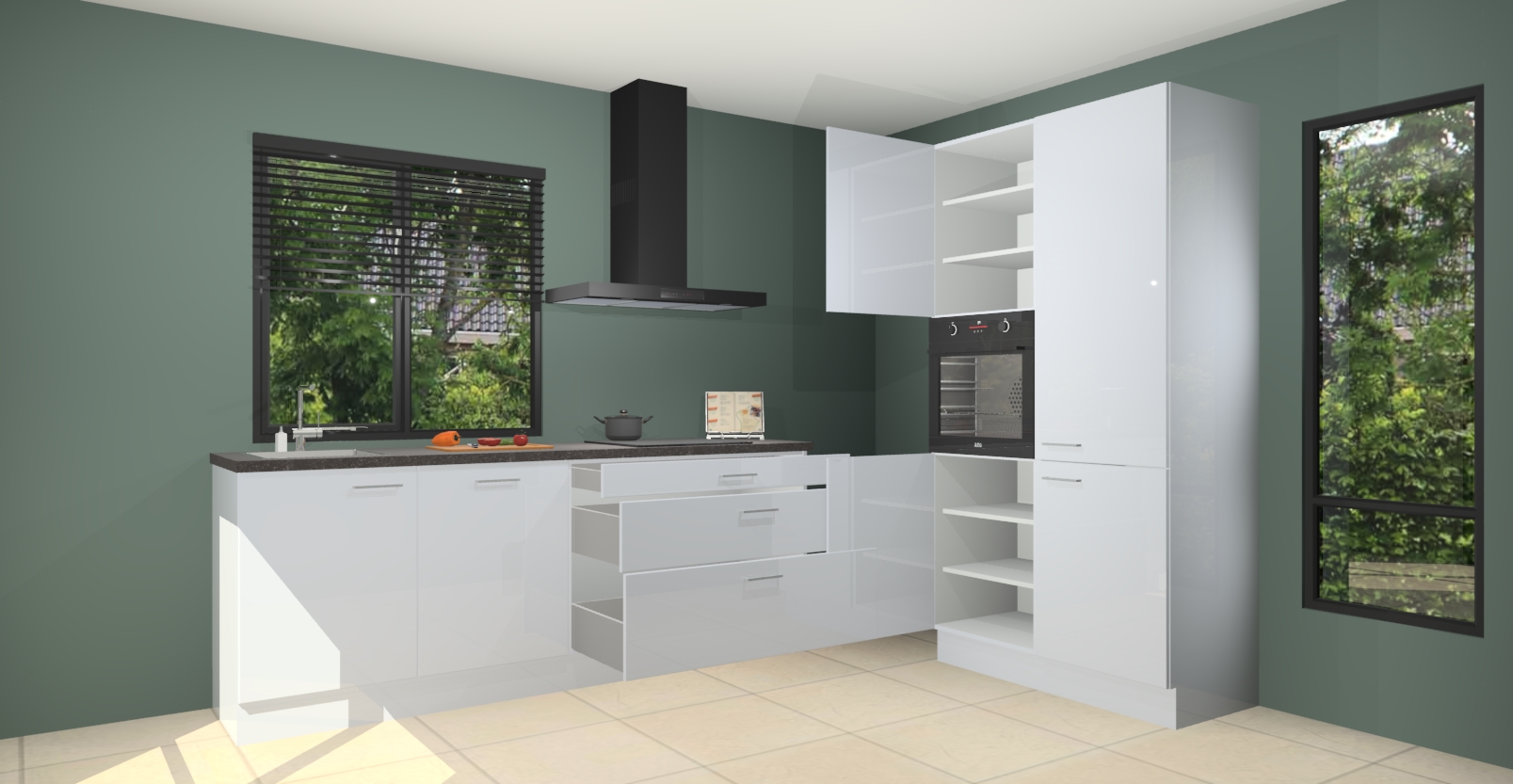 De setting is compleet gemaakt door de vijf inbouwapparaten: wanneer u gaat bestellen kunt u upgraden naar AEG-apparaten als oven, inductieplaat, afzuigkap, vaatwasser en koelkast. Kiest u voor onze Sneeuwwitte hoogglans keuken Monaco, dan weet u zeker dat u te maken heeft met Duitse kwaliteit. Bovendien is er altijd sprake van een lage prijs en profiteren we aantrekkelijk leveringstermijn: die bedraagt slechts 7 weken ! Om het extra makkelijk te maken worden de keukenkasten reeds voorgemonteerd geleverd.