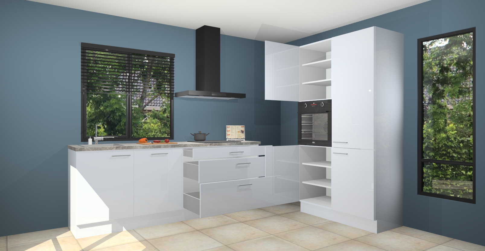 De setting is compleet gemaakt door de vijf inbouwapparaten: wanneer u gaat bestellen kunt u upgraden naar AEG-apparaten als oven, inductieplaat, afzuigkap, vaatwasser en koelkast. Kiest u voor onze Sneeuwwitte hoogglans keuken Monaco, dan weet u zeker dat u te maken heeft met Duitse kwaliteit. Bovendien is er altijd sprake van een lage prijs en profiteren we aantrekkelijk leveringstermijn: die bedraagt slechts 7 weken ! Om het extra makkelijk te maken worden de keukenkasten reeds voorgemonteerd geleverd.