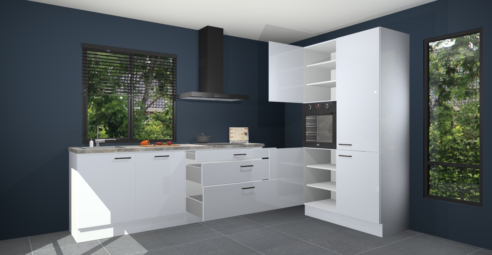 De setting is compleet gemaakt door de vijf inbouwapparaten: wanneer u gaat bestellen kunt u upgraden naar AEG-apparaten als oven, inductieplaat, afzuigkap, vaatwasser en koelkast. Kiest u voor onze Sneeuwwitte hoogglans keuken Monaco, dan weet u zeker dat u te maken heeft met Duitse kwaliteit. Bovendien is er altijd sprake van een lage prijs en profiteren we aantrekkelijk leveringstermijn: die bedraagt slechts 7 weken ! Om het extra makkelijk te maken worden de keukenkasten reeds voorgemonteerd geleverd.