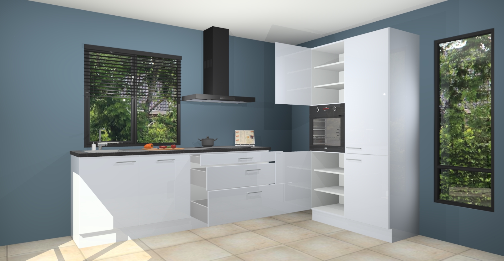 De setting is compleet gemaakt door de vijf inbouwapparaten: wanneer u gaat bestellen kunt u upgraden naar AEG-apparaten als oven, inductieplaat, afzuigkap, vaatwasser en koelkast. Kiest u voor onze Sneeuwwitte hoogglans keuken Monaco, dan weet u zeker dat u te maken heeft met Duitse kwaliteit. Bovendien is er altijd sprake van een lage prijs en profiteren we aantrekkelijk leveringstermijn: die bedraagt slechts 7 weken ! Om het extra makkelijk te maken worden de keukenkasten reeds voorgemonteerd geleverd.
