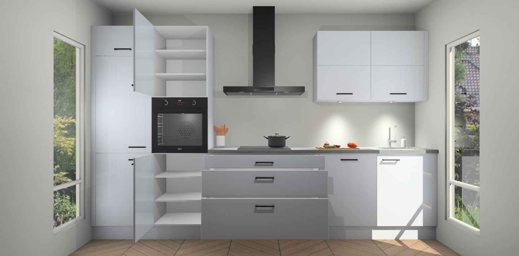 Inclusief plinten, stelpoten en werkblad