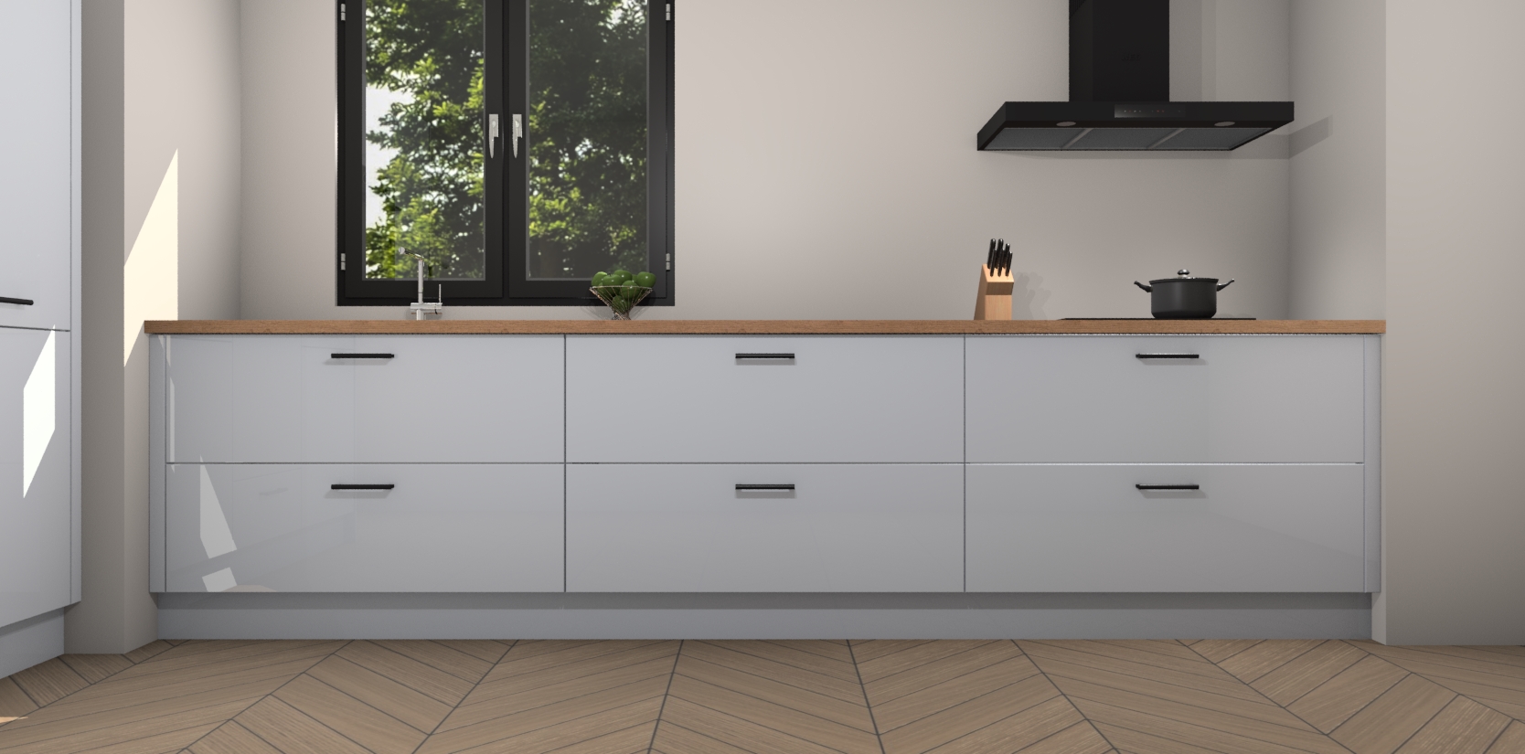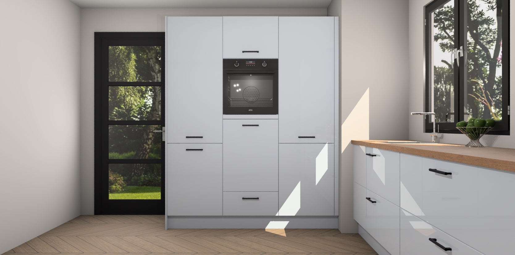 De softclose deuren openen en sluiten is ook heel eenvoudig - geniet van een moeiteloze keukenervaring, zelfs als er kinderen rondlopen. Voor extra gemak bij het plaatsen van uw bestelling bieden we ook een upgrade naar een kookplaat met geïntegreerde afzuiging.