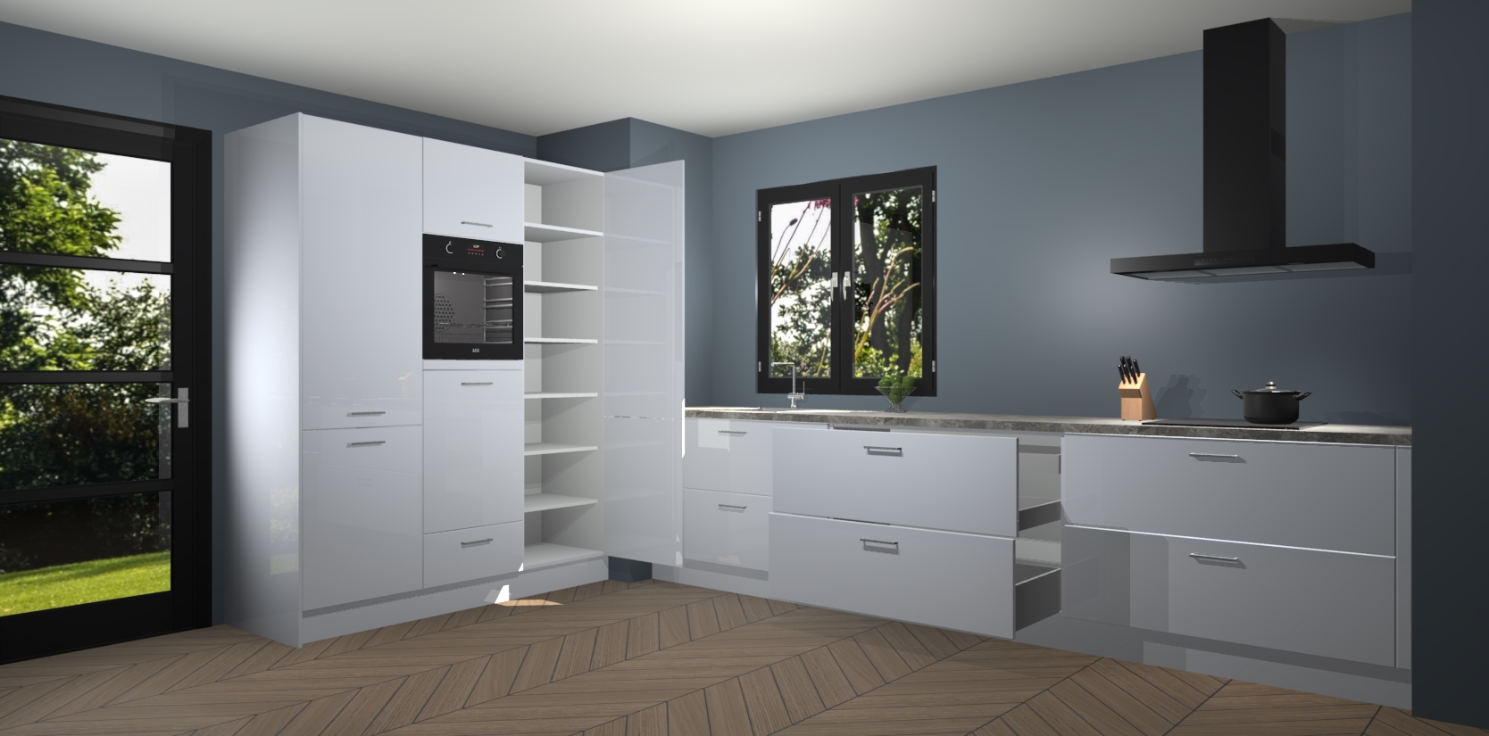 De softclose deuren openen en sluiten is ook heel eenvoudig - geniet van een moeiteloze keukenervaring, zelfs als er kinderen rondlopen. Voor extra gemak bij het plaatsen van uw bestelling bieden we ook een upgrade naar een kookplaat met geïntegreerde afzuiging.