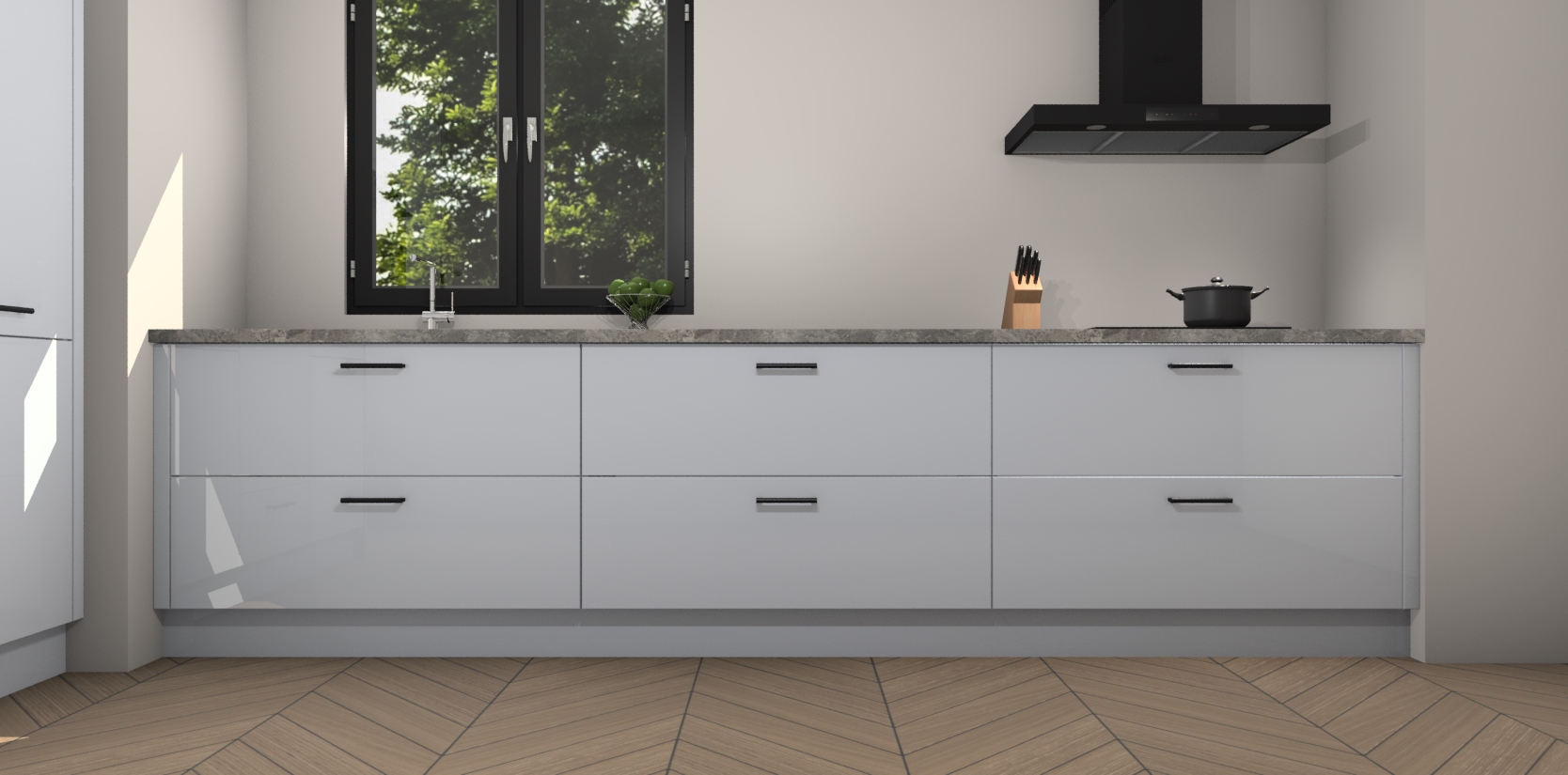 De softclose deuren openen en sluiten is ook heel eenvoudig - geniet van een moeiteloze keukenervaring, zelfs als er kinderen rondlopen. Voor extra gemak bij het plaatsen van uw bestelling bieden we ook een upgrade naar een kookplaat met geïntegreerde afzuiging.