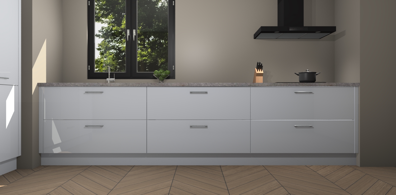 De softclose deuren openen en sluiten is ook heel eenvoudig - geniet van een moeiteloze keukenervaring, zelfs als er kinderen rondlopen. Voor extra gemak bij het plaatsen van uw bestelling bieden we ook een upgrade naar een kookplaat met geïntegreerde afzuiging.