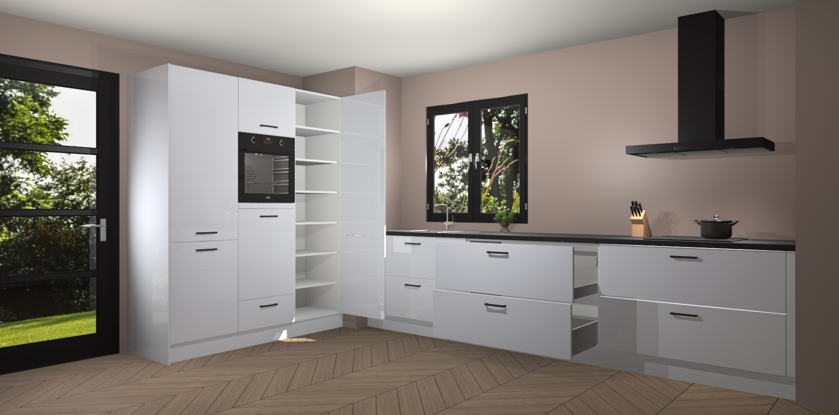 De softclose deuren openen en sluiten is ook heel eenvoudig - geniet van een moeiteloze keukenervaring, zelfs als er kinderen rondlopen. Voor extra gemak bij het plaatsen van uw bestelling bieden we ook een upgrade naar een kookplaat met geïntegreerde afzuiging.