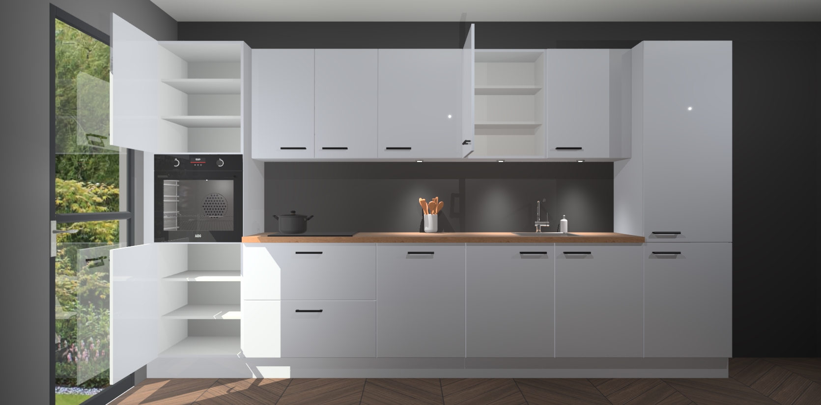 Dit is de perfecte keuken voor wie op zoek is naar een luxueuze stijl zonder zijn portemonnee te legen! Het chique ontwerp van de sneeuwwitte hoogglans keuken Wels voegt dat vleugje verfijning toe aan elk huis. Het gemak van voorgemonteerde kasten bespaart u talloze uren tijd en energie, zodat u veel sneller dan verwacht kunt beginnen te genieten van uw prachtige nieuwe keuken. Bovendien bedraagt de levertijd slechts 7 weken.