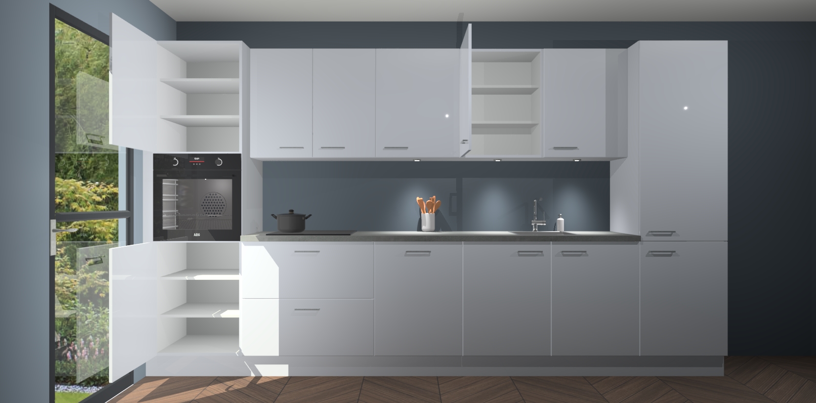 Dit is de perfecte keuken voor wie op zoek is naar een luxueuze stijl zonder zijn portemonnee te legen! Het chique ontwerp van de sneeuwwitte hoogglans keuken Wels voegt dat vleugje verfijning toe aan elk huis. Het gemak van voorgemonteerde kasten bespaart u talloze uren tijd en energie, zodat u veel sneller dan verwacht kunt beginnen te genieten van uw prachtige nieuwe keuken. Bovendien bedraagt de levertijd slechts 7 weken.