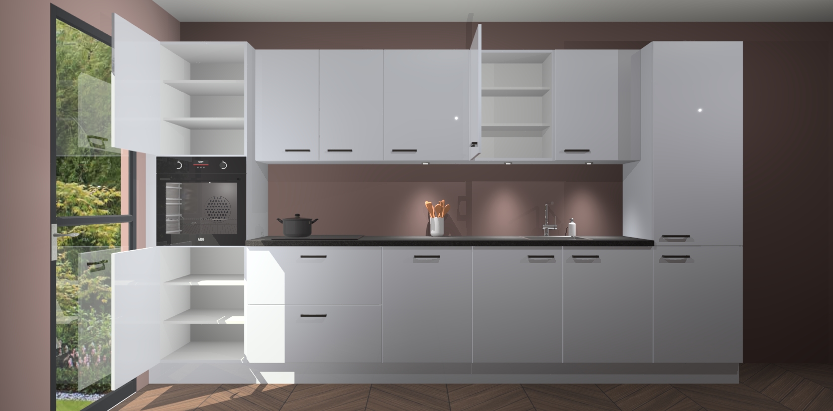 Dit is de perfecte keuken voor wie op zoek is naar een luxueuze stijl zonder zijn portemonnee te legen! Het chique ontwerp van de sneeuwwitte hoogglans keuken Wels voegt dat vleugje verfijning toe aan elk huis. Het gemak van voorgemonteerde kasten bespaart u talloze uren tijd en energie, zodat u veel sneller dan verwacht kunt beginnen te genieten van uw prachtige nieuwe keuken. Bovendien bedraagt de levertijd slechts 7 weken.
