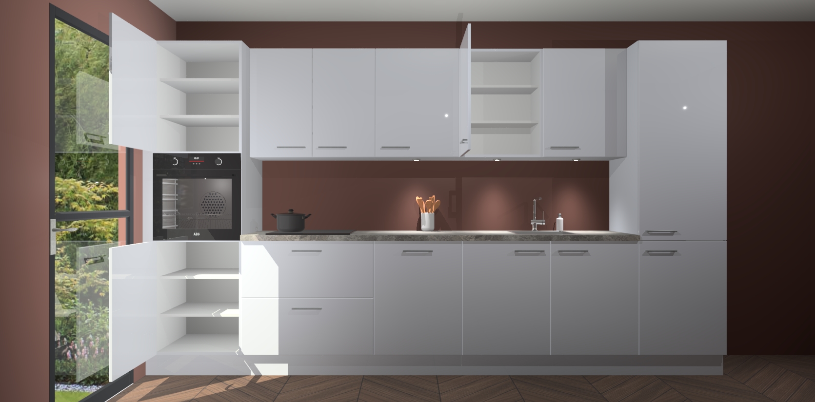 Dit is de perfecte keuken voor wie op zoek is naar een luxueuze stijl zonder zijn portemonnee te legen! Het chique ontwerp van de sneeuwwitte hoogglans keuken Wels voegt dat vleugje verfijning toe aan elk huis. Het gemak van voorgemonteerde kasten bespaart u talloze uren tijd en energie, zodat u veel sneller dan verwacht kunt beginnen te genieten van uw prachtige nieuwe keuken. Bovendien bedraagt de levertijd slechts 7 weken.