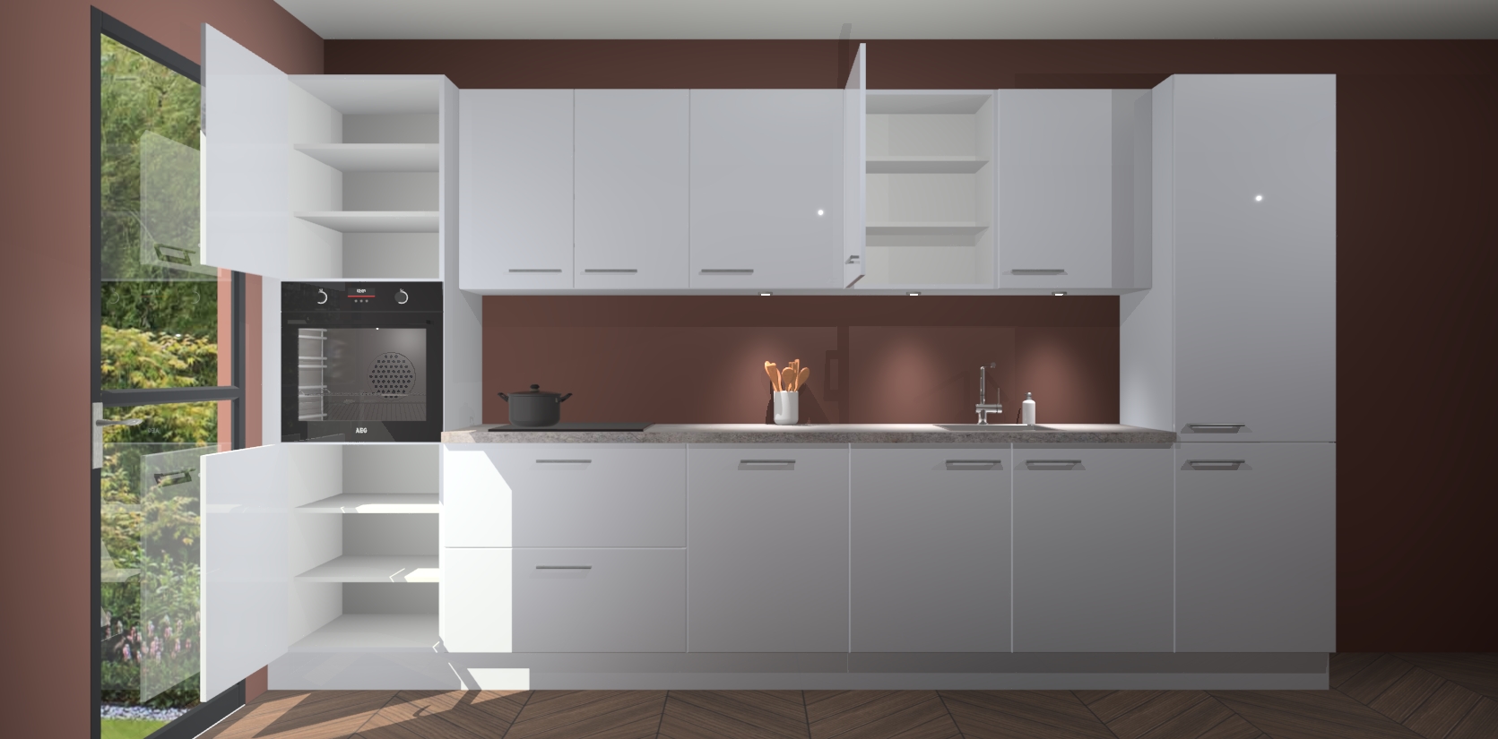 Dit is de perfecte keuken voor wie op zoek is naar een luxueuze stijl zonder zijn portemonnee te legen! Het chique ontwerp van de sneeuwwitte hoogglans keuken Wels voegt dat vleugje verfijning toe aan elk huis. Het gemak van voorgemonteerde kasten bespaart u talloze uren tijd en energie, zodat u veel sneller dan verwacht kunt beginnen te genieten van uw prachtige nieuwe keuken. Bovendien bedraagt de levertijd slechts 7 weken.