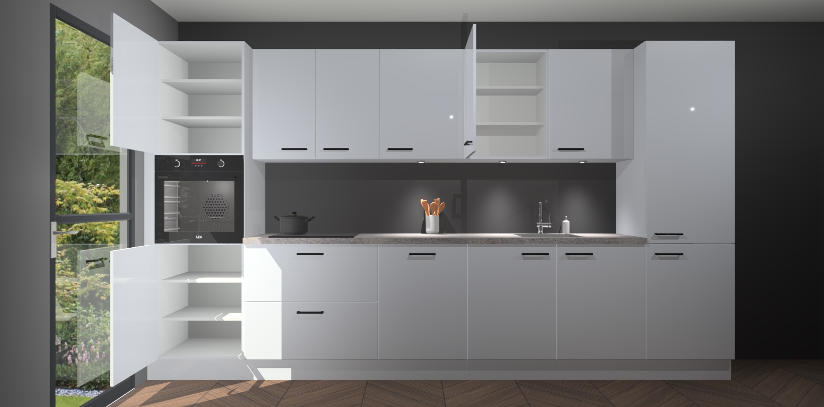 Dit is de perfecte keuken voor wie op zoek is naar een luxueuze stijl zonder zijn portemonnee te legen! Het chique ontwerp van de sneeuwwitte hoogglans keuken Wels voegt dat vleugje verfijning toe aan elk huis. Het gemak van voorgemonteerde kasten bespaart u talloze uren tijd en energie, zodat u veel sneller dan verwacht kunt beginnen te genieten van uw prachtige nieuwe keuken. Bovendien bedraagt de levertijd slechts 7 weken.