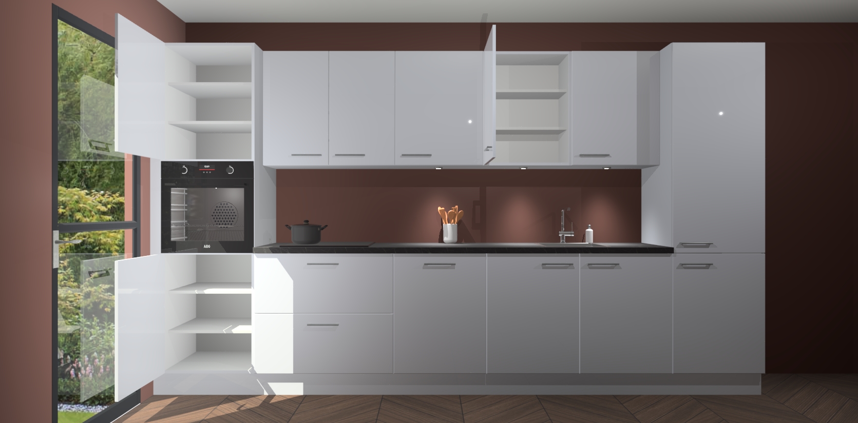 Dit is de perfecte keuken voor wie op zoek is naar een luxueuze stijl zonder zijn portemonnee te legen! Het chique ontwerp van de sneeuwwitte hoogglans keuken Wels voegt dat vleugje verfijning toe aan elk huis. Het gemak van voorgemonteerde kasten bespaart u talloze uren tijd en energie, zodat u veel sneller dan verwacht kunt beginnen te genieten van uw prachtige nieuwe keuken. Bovendien bedraagt de levertijd slechts 7 weken.