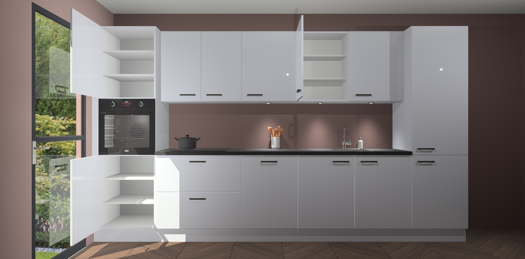 Dit is de perfecte keuken voor wie op zoek is naar een luxueuze stijl zonder zijn portemonnee te legen! Het chique ontwerp van de sneeuwwitte hoogglans keuken Wels voegt dat vleugje verfijning toe aan elk huis. Het gemak van voorgemonteerde kasten bespaart u talloze uren tijd en energie, zodat u veel sneller dan verwacht kunt beginnen te genieten van uw prachtige nieuwe keuken. Bovendien bedraagt de levertijd slechts 7 weken.