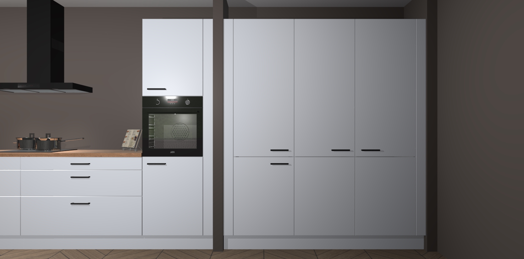 Een stijlvolle en praktische keuken als deze mag gezien worden. Dankzij de prachtige matte afwerking wordt de keuken gemakkelijk het middelpunt van uw huis - hij ziet er geweldig uit onder allerlei lichtomstandigheden, van dag tot nacht!