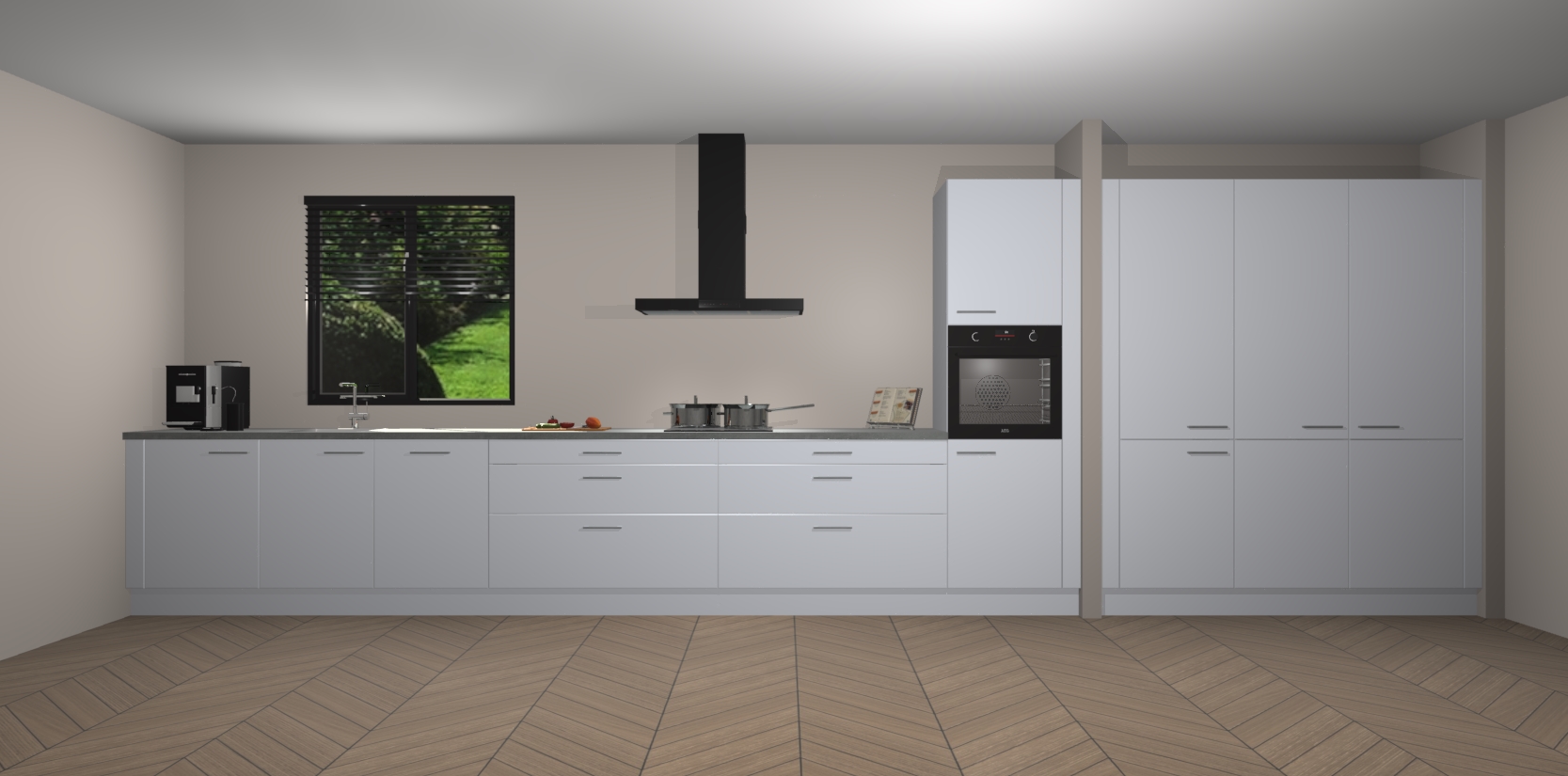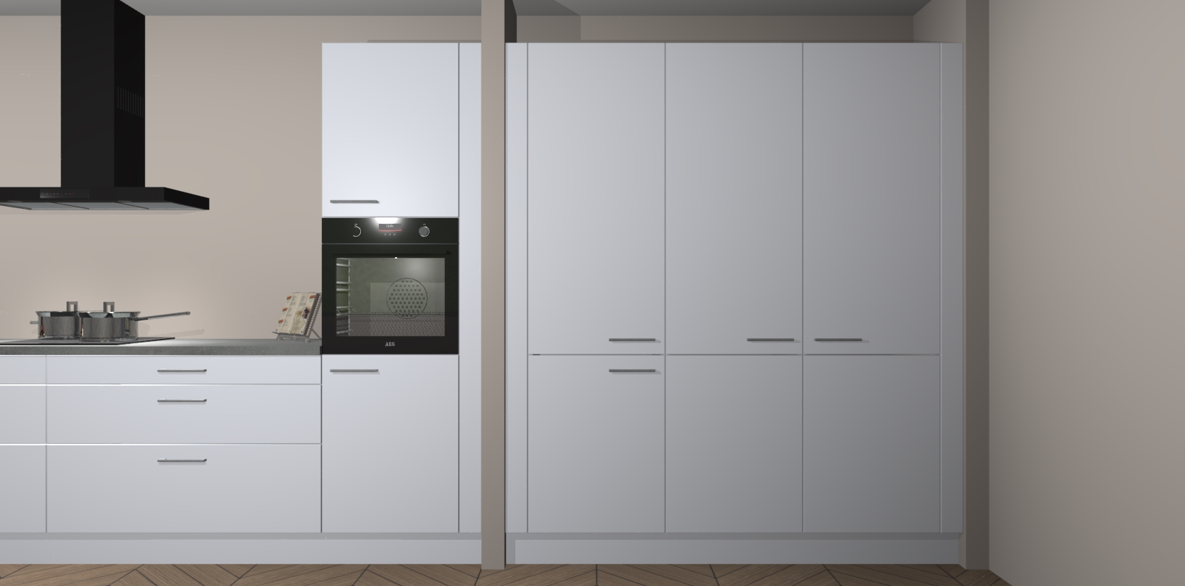 Een stijlvolle en praktische keuken als deze mag gezien worden. Dankzij de prachtige matte afwerking wordt de keuken gemakkelijk het middelpunt van uw huis - hij ziet er geweldig uit onder allerlei lichtomstandigheden, van dag tot nacht!