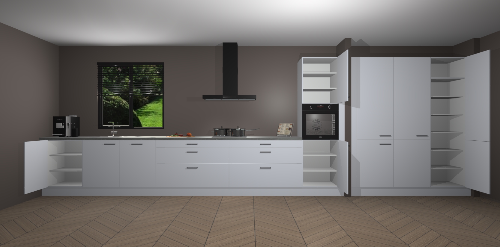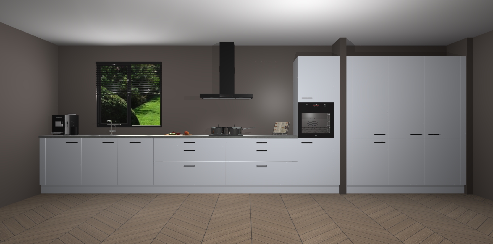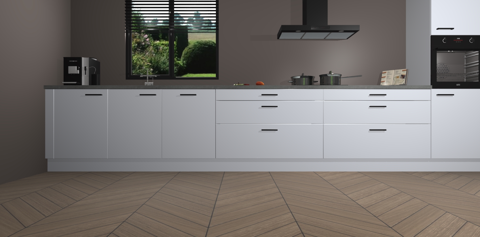 Een stijlvolle en praktische keuken als deze mag gezien worden. Dankzij de prachtige matte afwerking wordt de keuken gemakkelijk het middelpunt van uw huis - hij ziet er geweldig uit onder allerlei lichtomstandigheden, van dag tot nacht!