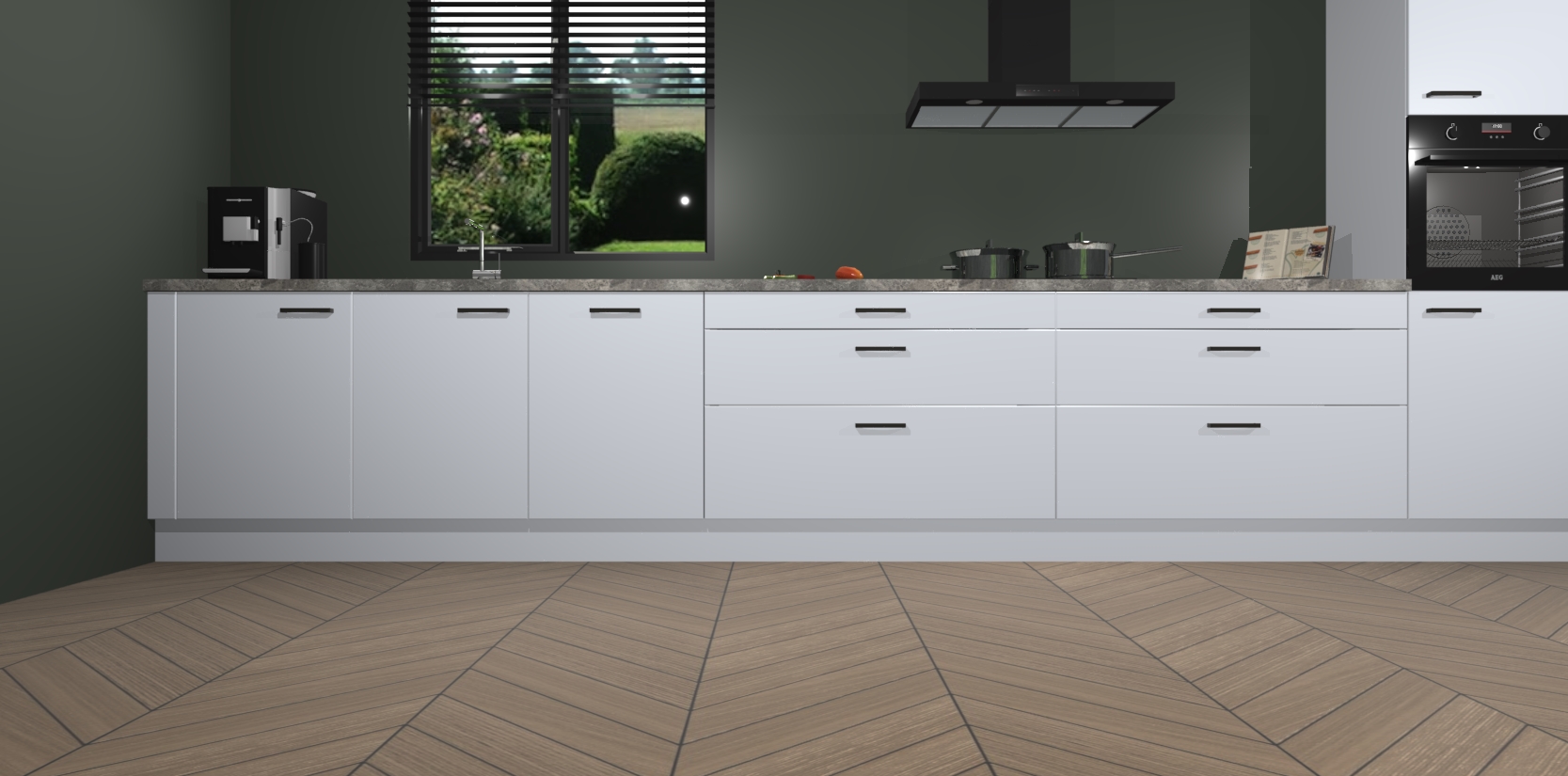 In deze box zijn alle kleuren verzameld van de deuren en werkbladen. Vraag de gratis kleurenbox aan en kijk thuis rustig verder!
