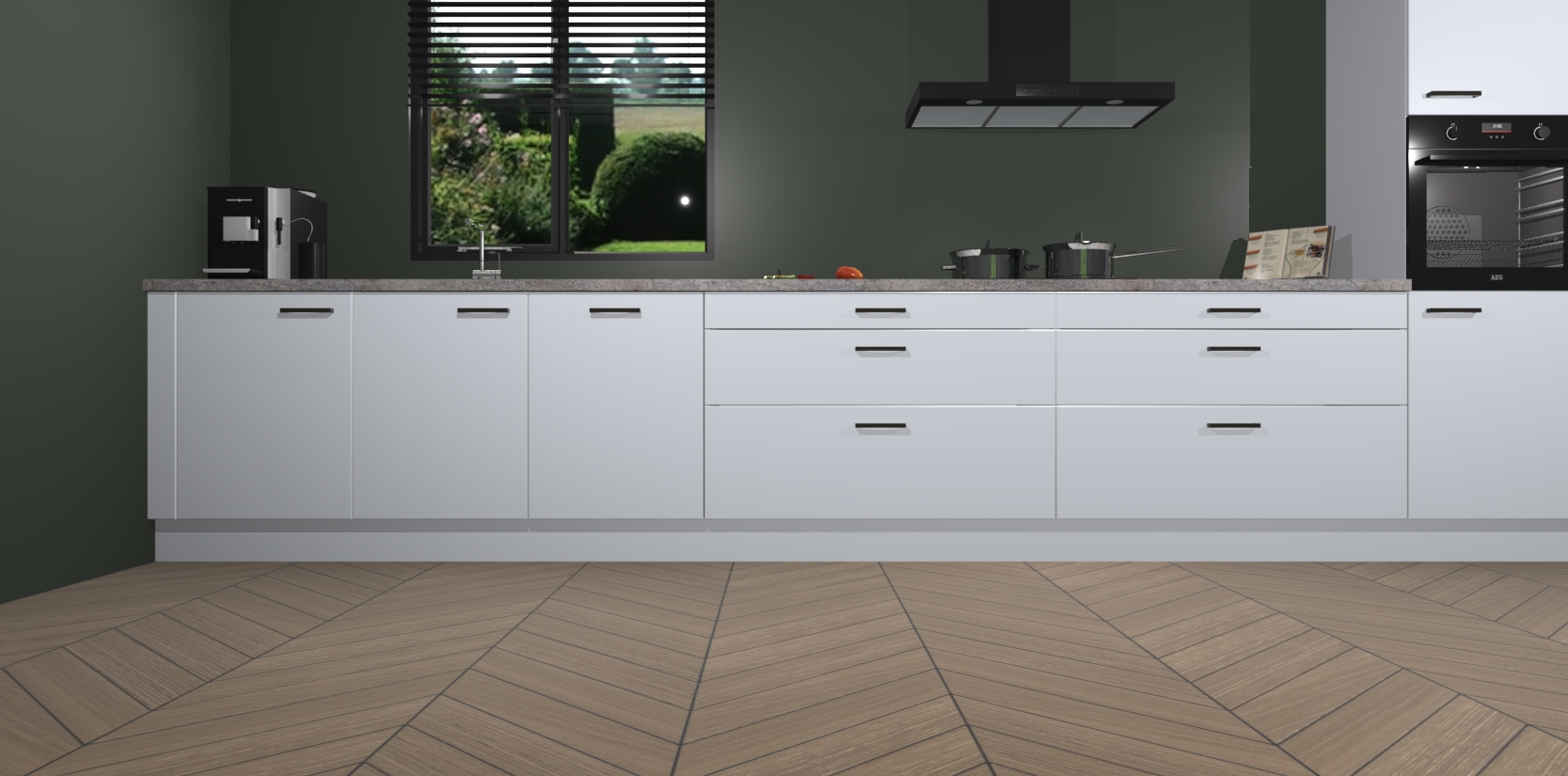 In deze box zijn alle kleuren verzameld van de deuren en werkbladen. Vraag de gratis kleurenbox aan en kijk thuis rustig verder!