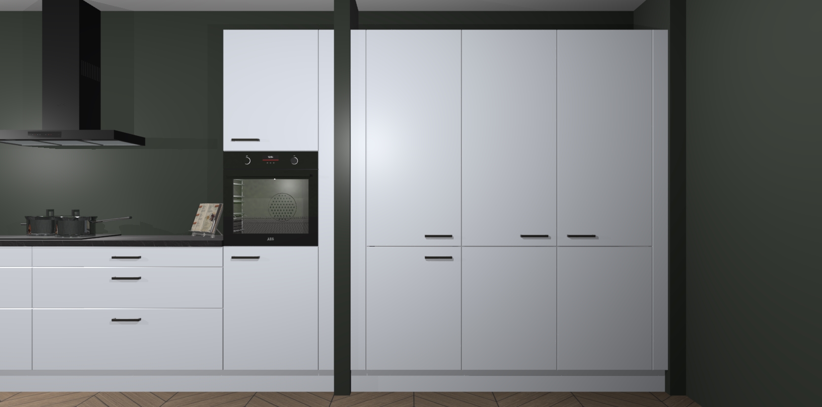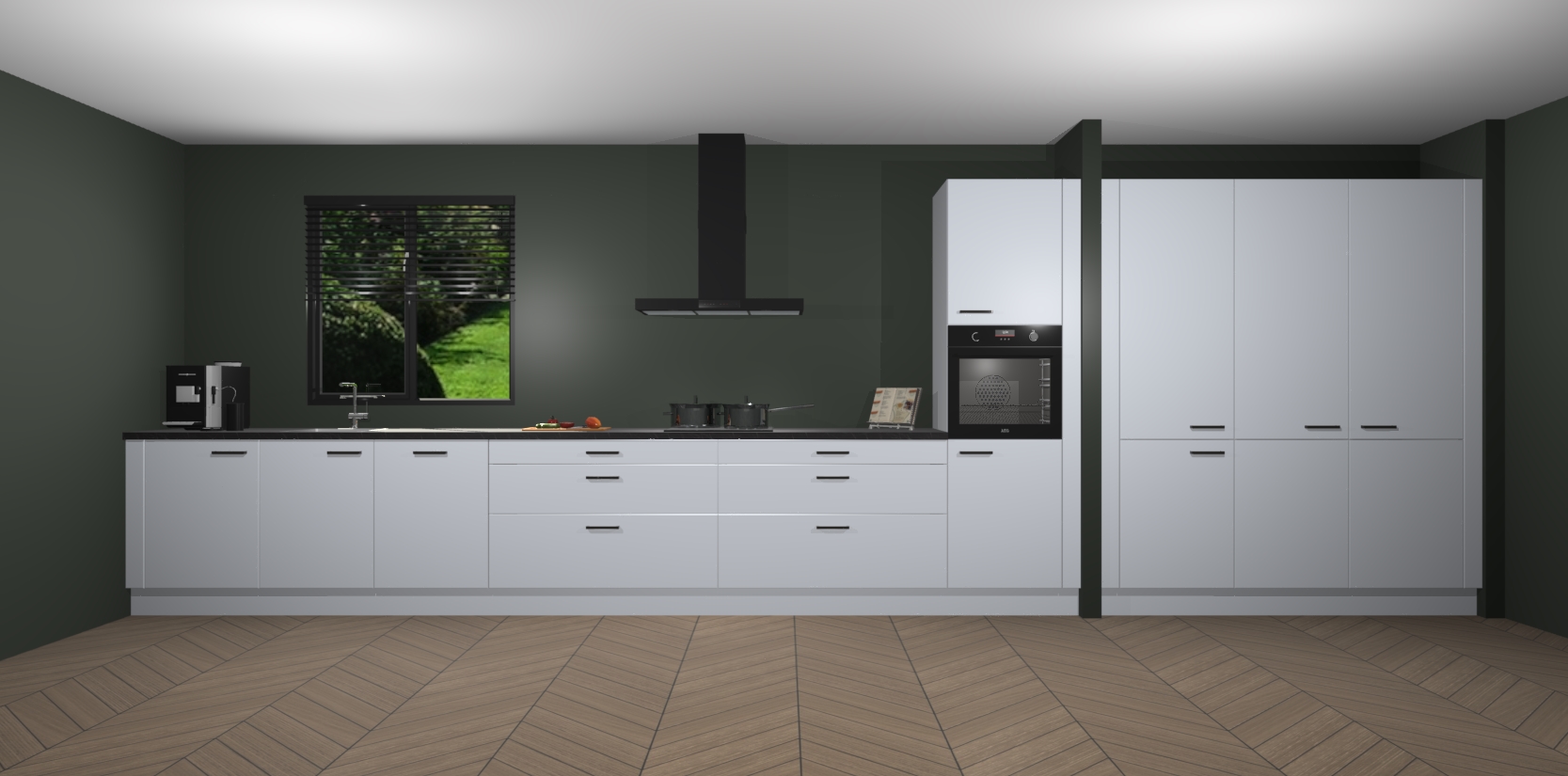Een stijlvolle en praktische keuken als deze mag gezien worden. Dankzij de prachtige matte afwerking wordt de keuken gemakkelijk het middelpunt van uw huis - hij ziet er geweldig uit onder allerlei lichtomstandigheden, van dag tot nacht!
