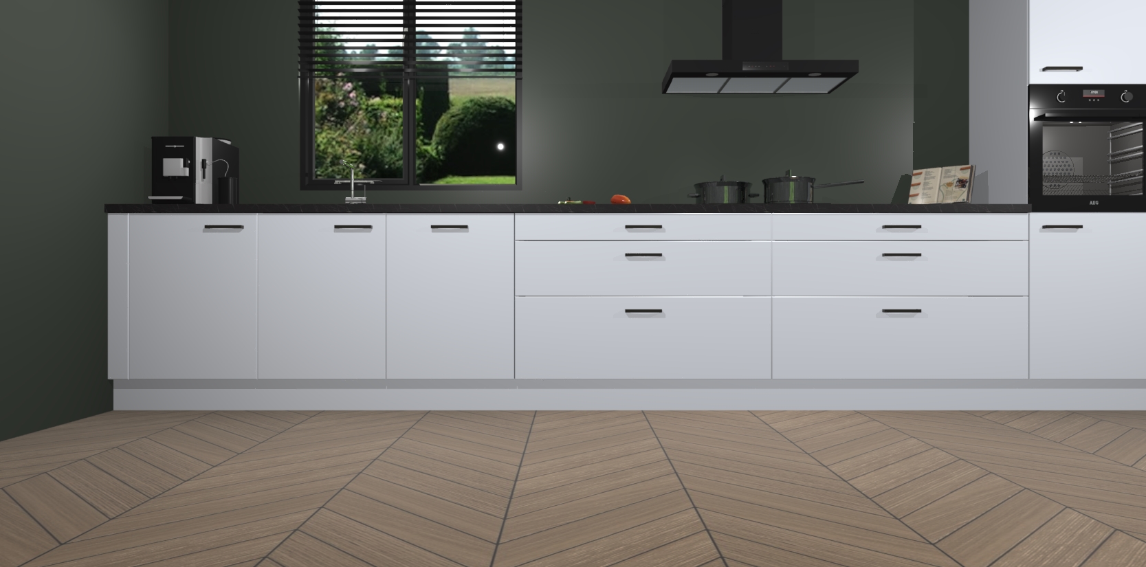 In deze box zijn alle kleuren verzameld van de deuren en werkbladen. Vraag de gratis kleurenbox aan en kijk thuis rustig verder!