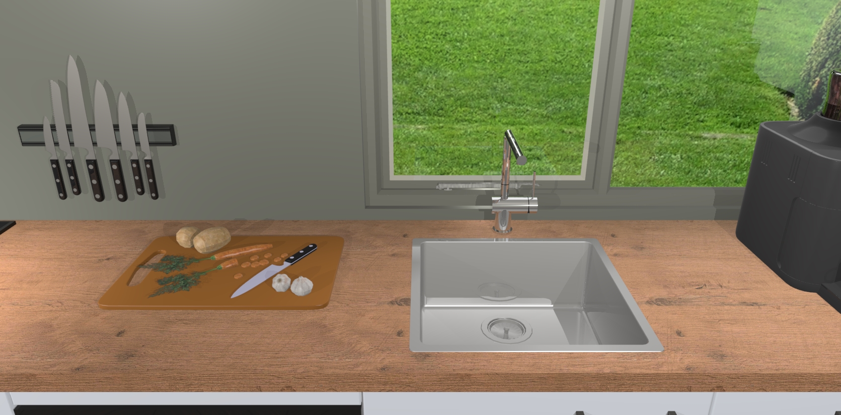- De spoelbak is nog niet in gevreesd. Dit dient tijdens het werk gedaan te worden