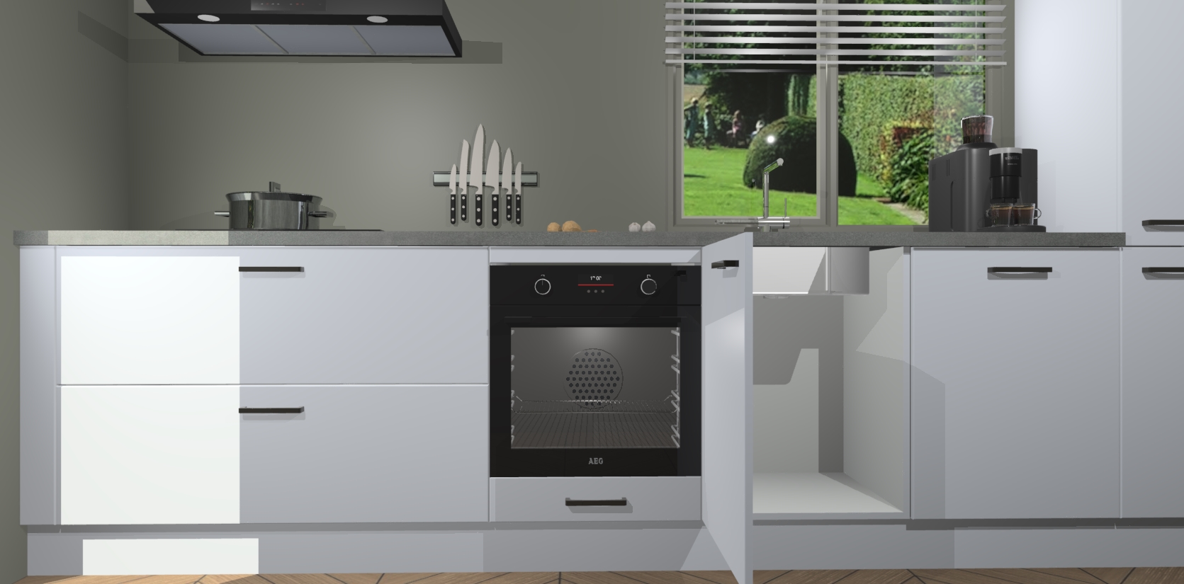 - Ombouw om de oven onder het werkblad te kunnen monteren