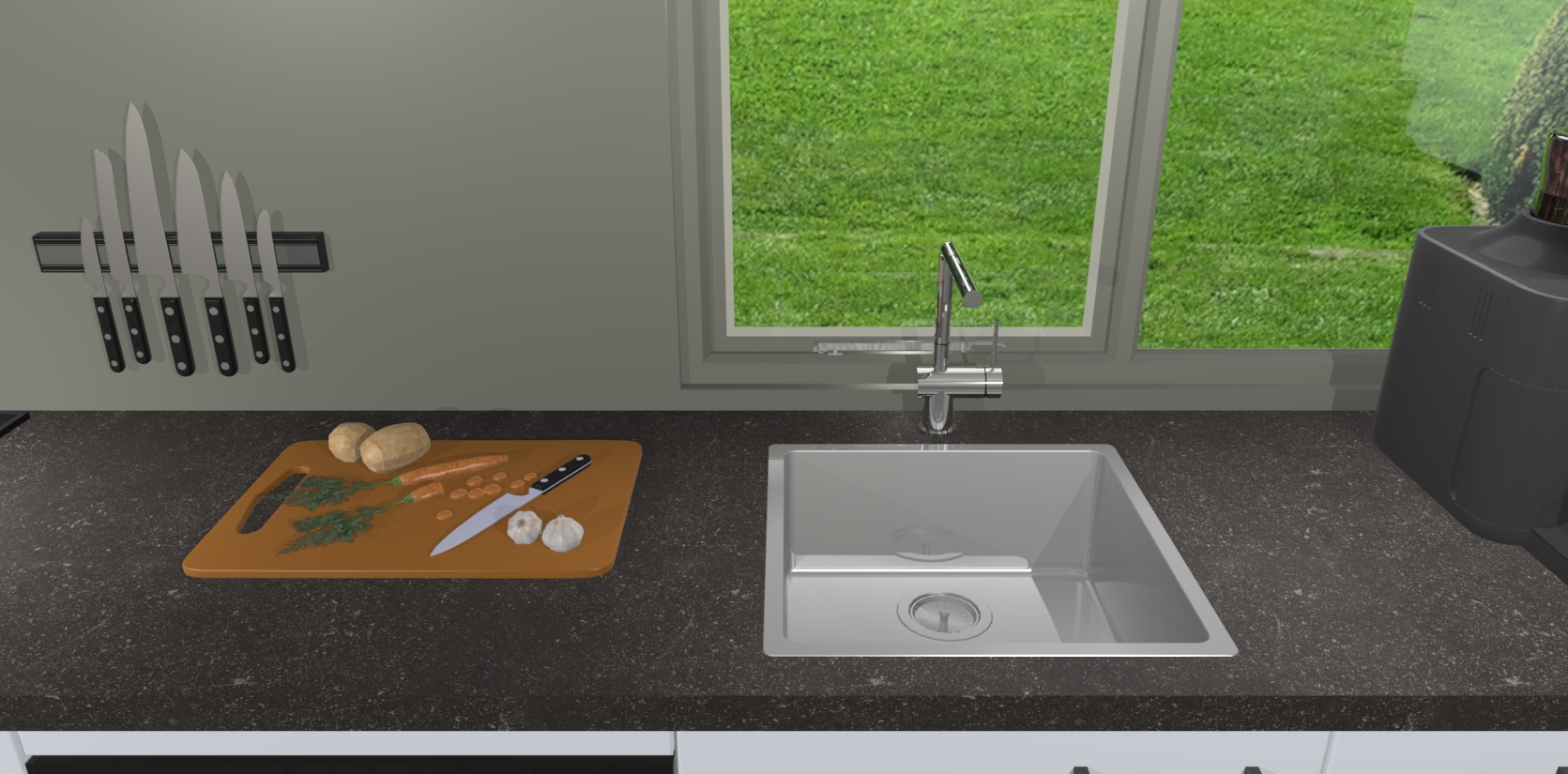 - De spoelbak is nog niet in gevreesd. Dit dient tijdens het werk gedaan te worden