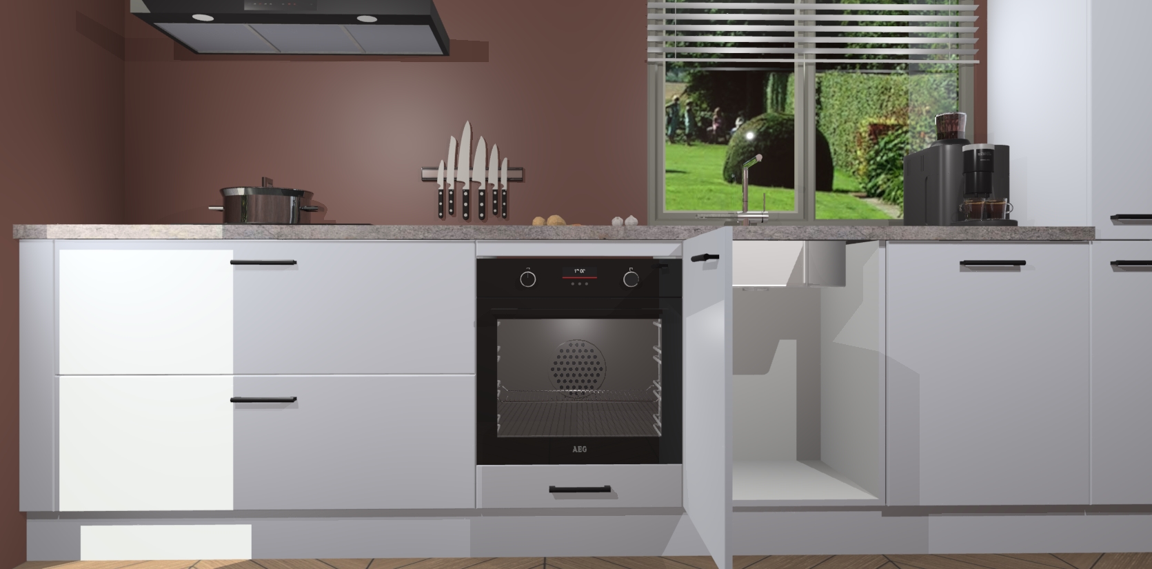 - Ombouw om de oven onder het werkblad te kunnen monteren