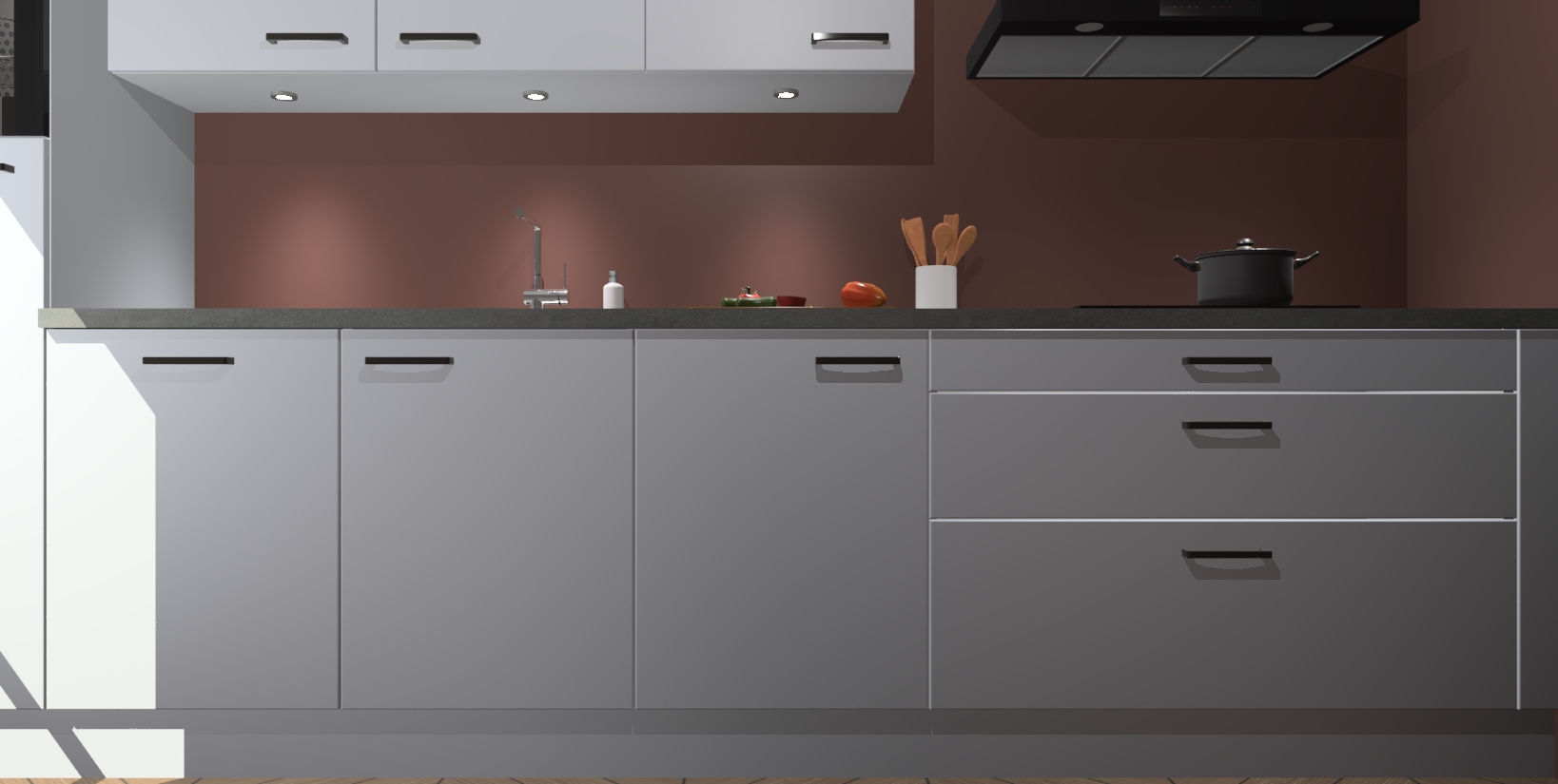 Inclusief plinten, stelpoten en werkblad