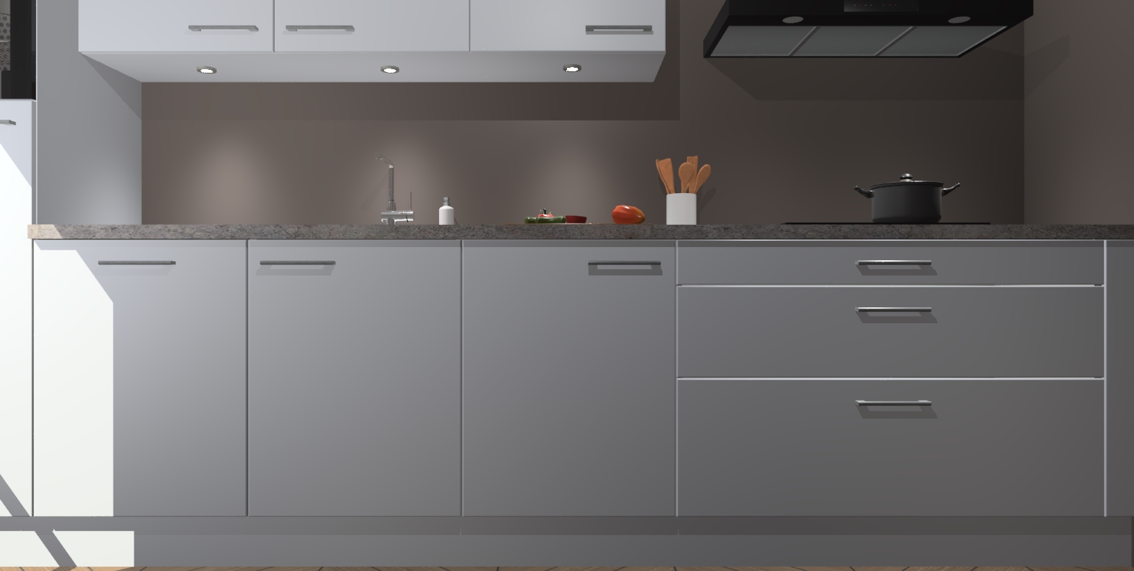 Inclusief plinten, stelpoten en werkblad