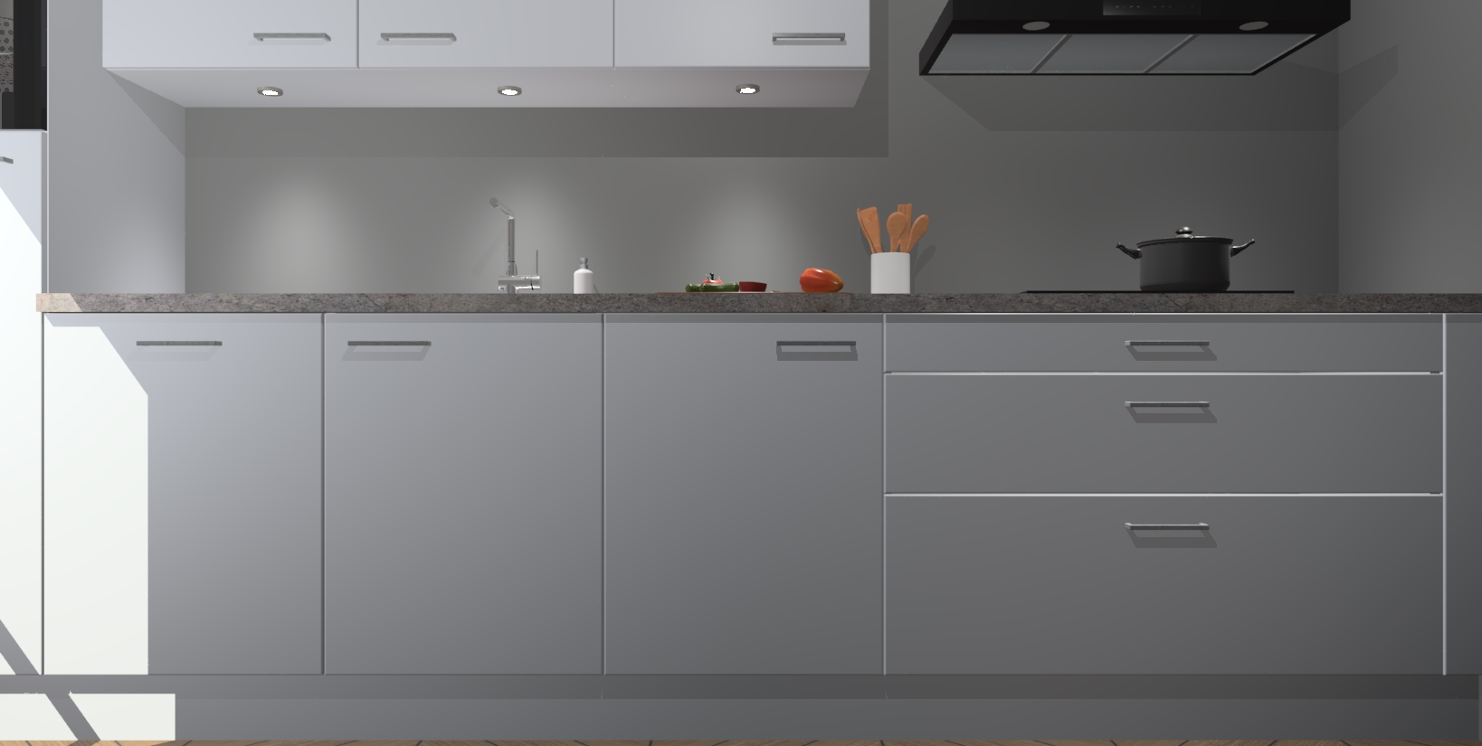 Inclusief plinten, stelpoten en werkblad