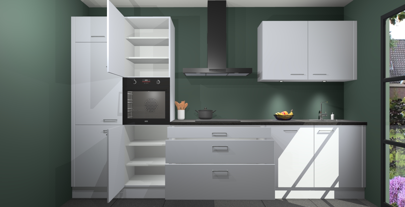 Bovendien is er veel opbergruimte met deze pracht keuken, zodat u ervoor kunt zorgen dat uw kasten en lades altijd georganiseerd zijn - iets wat iedereen waardeert in een drukke keuken. Niemand houdt van een lawaaierige keuken als u de deuren opent en sluit; dankzij de soft close technologie gaat het openen en sluiten van de deuren geruisloos! Bovendien krijgt u de levering binnen 7 weken - hoe geweldig is dat?