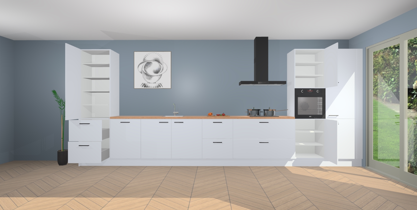 Inclusief plinten, stelpoten en werkblad