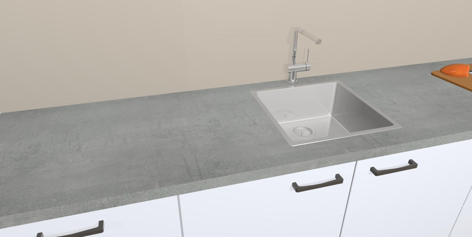 - De spoelbak is nog niet in gevreesd. Dit dient tijdens het werk gedaan te worden