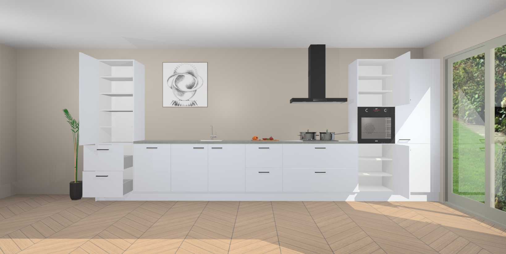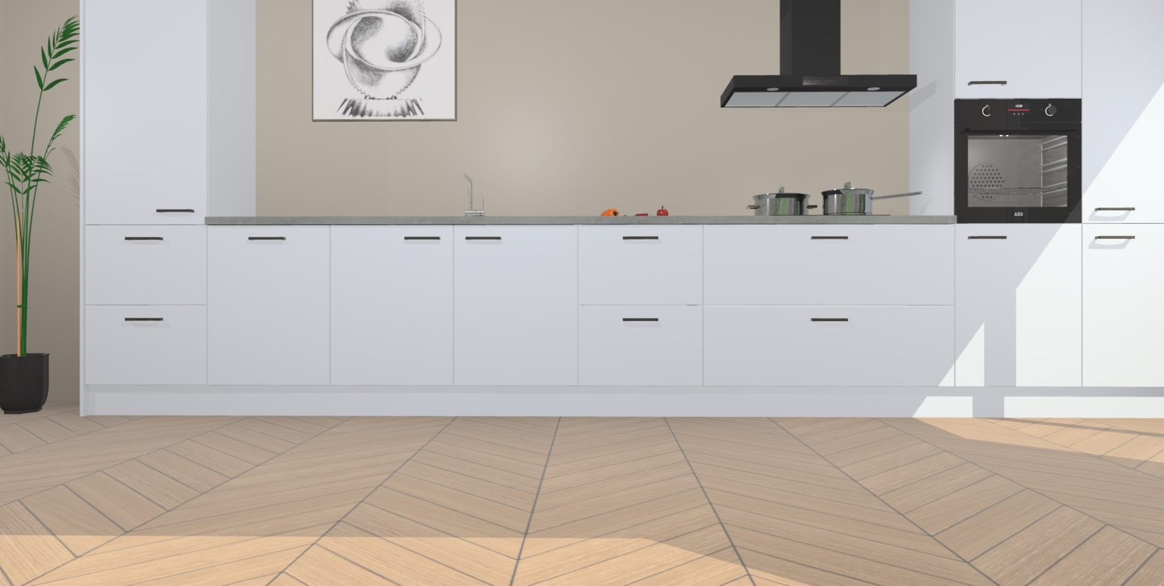 Inclusief plinten, stelpoten en werkblad