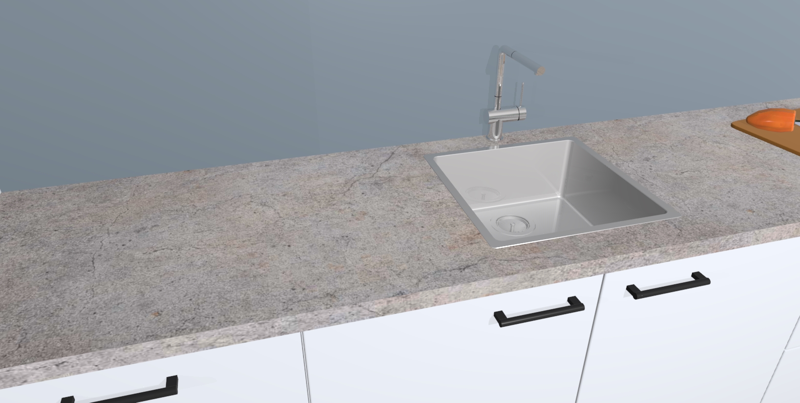 - De spoelbak is nog niet in gevreesd. Dit dient tijdens het werk gedaan te worden