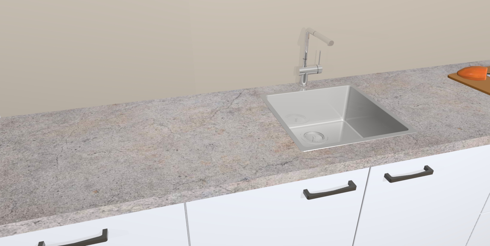 - De spoelbak is nog niet in gevreesd. Dit dient tijdens het werk gedaan te worden