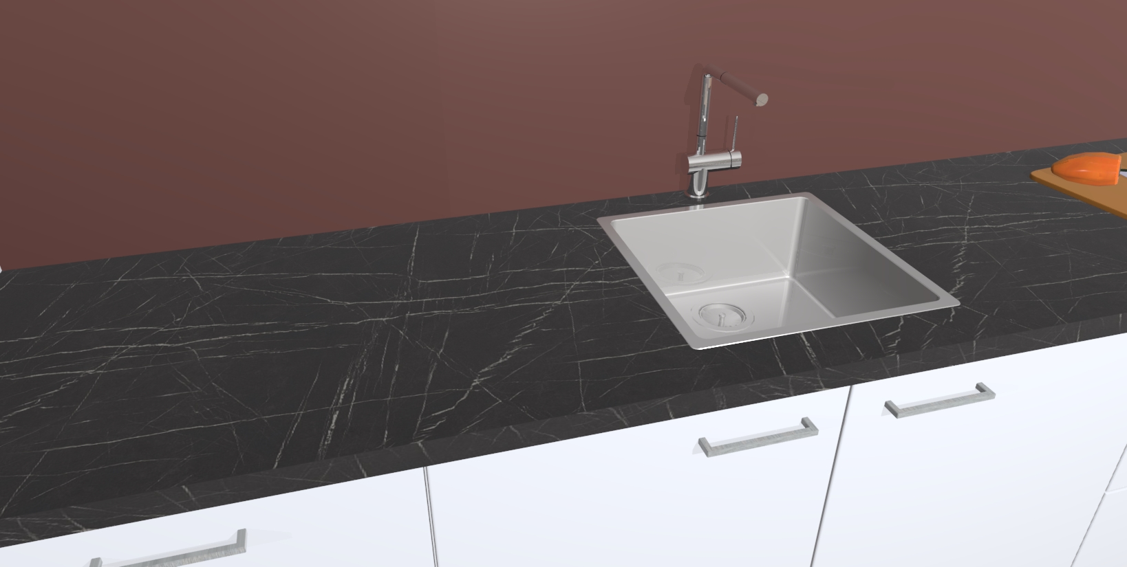 - De spoelbak is nog niet in gevreesd. Dit dient tijdens het werk gedaan te worden