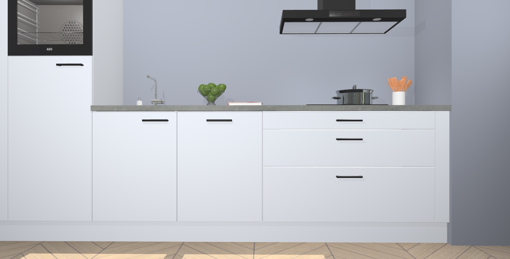 Inclusief plinten, stelpoten en werkblad