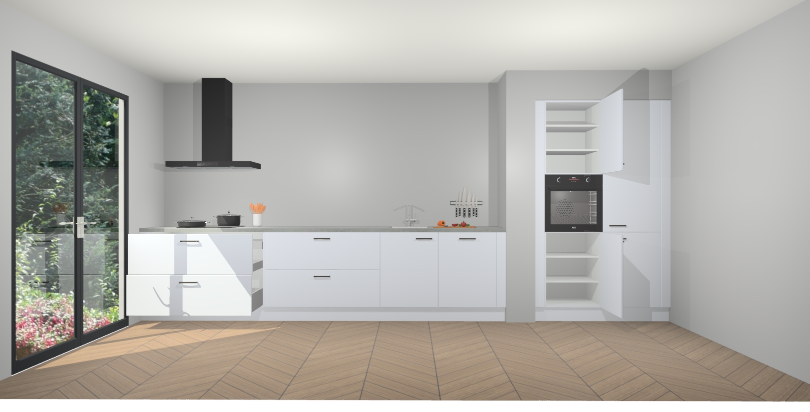 Maak kennis met de Sneeuwwitte keuken Calgary - de perfecte aanvulling voor uw moderne keuken! Ervaar tijdloos design, elegantie en een chique uitstraling met onze handgrepen, soft-close deuren en veel opbergruimte. Dit alles wordt aangeboden tegen een vaste lage prijs voor ongeëvenaarde Duitse keukenkwaliteit!
