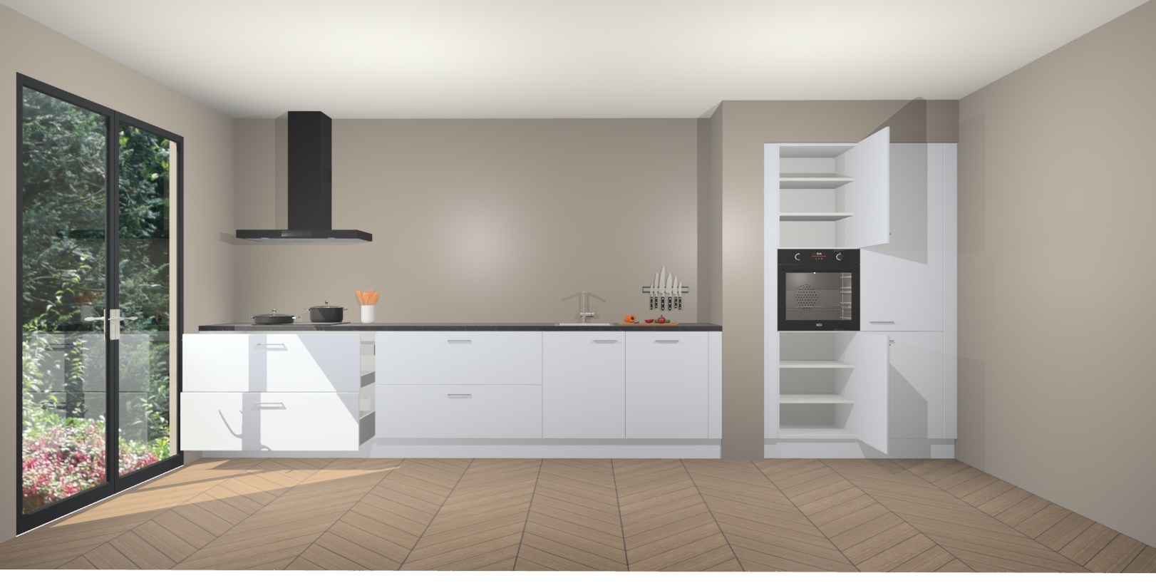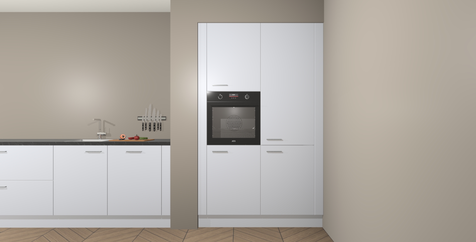 Maak kennis met de Sneeuwwitte keuken Calgary - de perfecte aanvulling voor uw moderne keuken! Ervaar tijdloos design, elegantie en een chique uitstraling met onze handgrepen, soft-close deuren en veel opbergruimte. Dit alles wordt aangeboden tegen een vaste lage prijs voor ongeëvenaarde Duitse keukenkwaliteit!